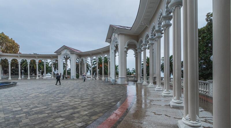 Начинается она в Приморском парке у знаменитого ресторана «Гагрипш», привезенного из Франции в 1902 году и собранного без единого гвоздя. Место колоритное, тут любят устраивать фотосессии приезжие и жители города.